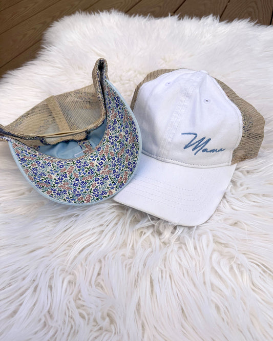 Sold outWhite Floral Ponytail Mama Hat