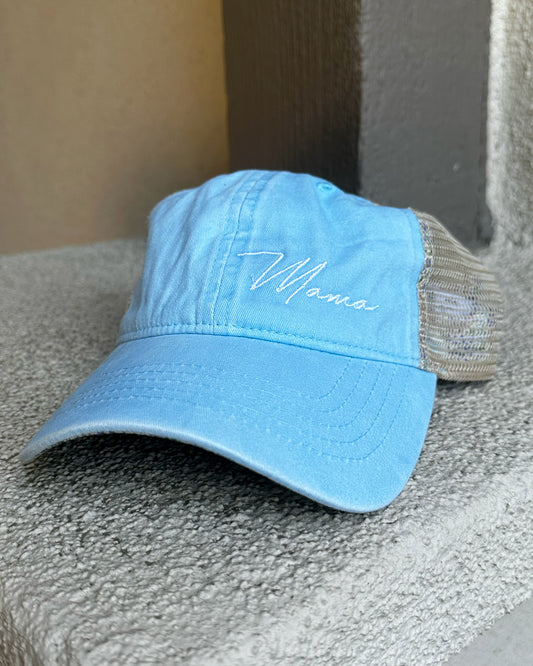 Light Blue Floral Ponytail Mama Hat