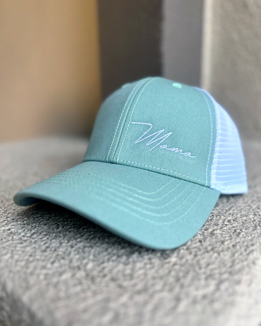 Sea Foam/White Mesh Ponytail Mama Hat