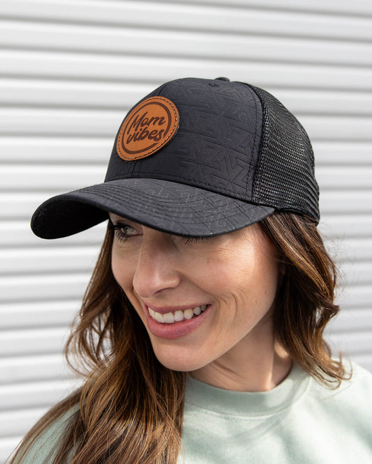 Quilted MomVibes Circle Patch - Curved Bill Trucker Snapback
